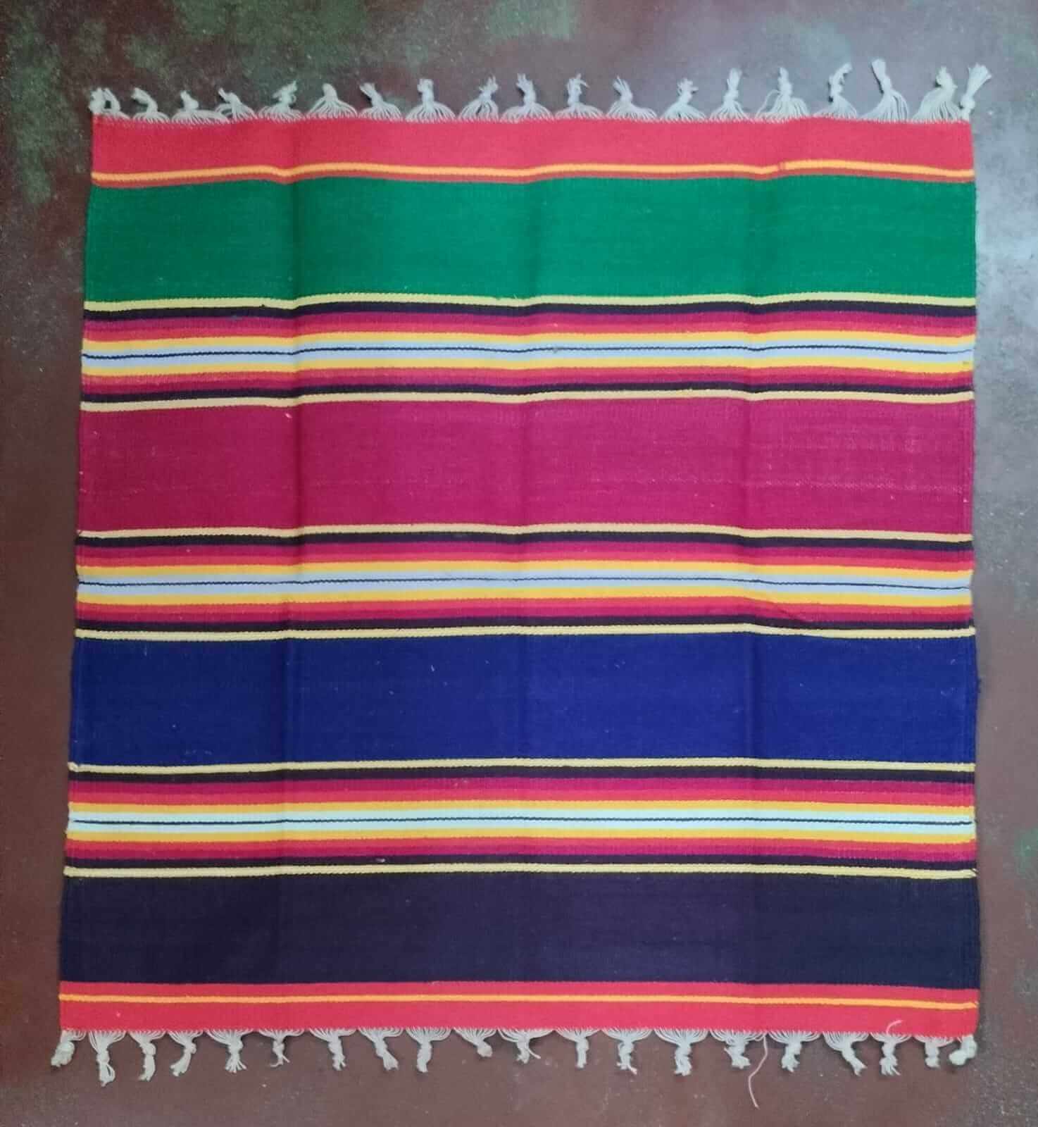 This 2 x 2 feet pooja carpet features classic striped patterns inspired by South Indian traditions. The compact size makes it ideal for home pooja rooms, temple use, and ceremonial setups. Each carpet is carefully woven and finished with tassels on the edges for a traditional look.