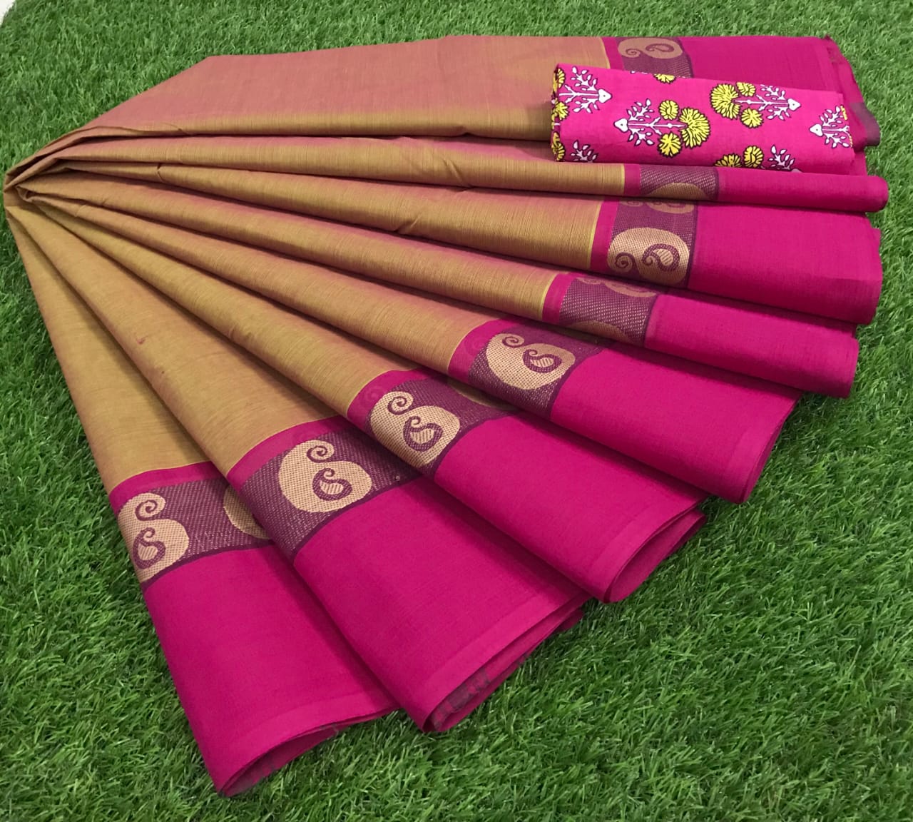 Jakkampatti pure cotton sarees, Brown with Pink border