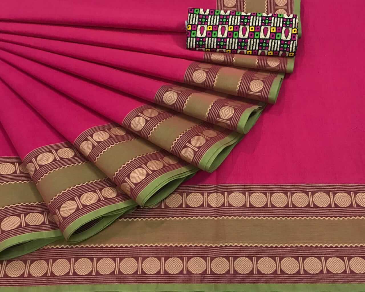 Jakkampatti pure cotton sarees, Pink with Green border