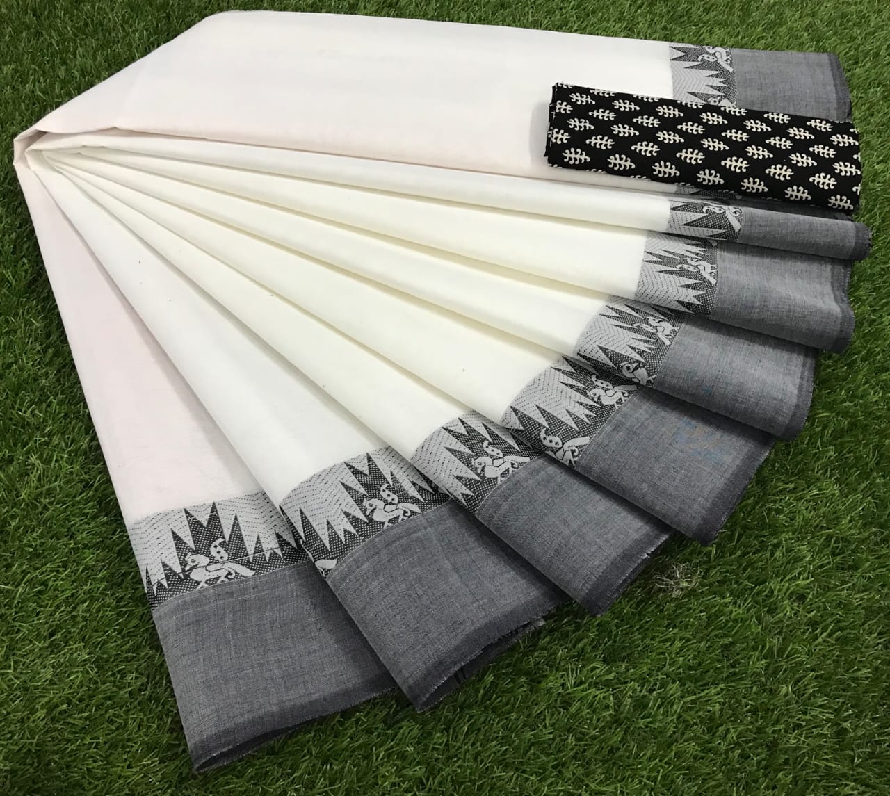 Jakkampatti pure cotton sarees, White with Grey border