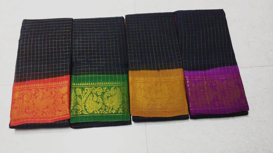 The main feature of Sungudi sarees is that they have bright colors along with contrasting borders, mostly in gold.