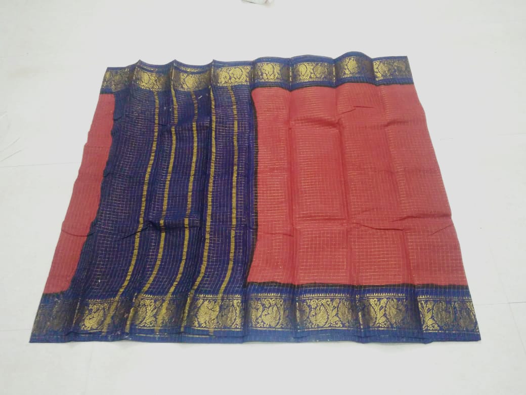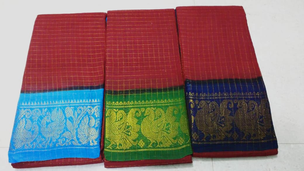 The main feature of Sungudi sarees is that they have bright colors along with contrasting borders, mostly in gold.